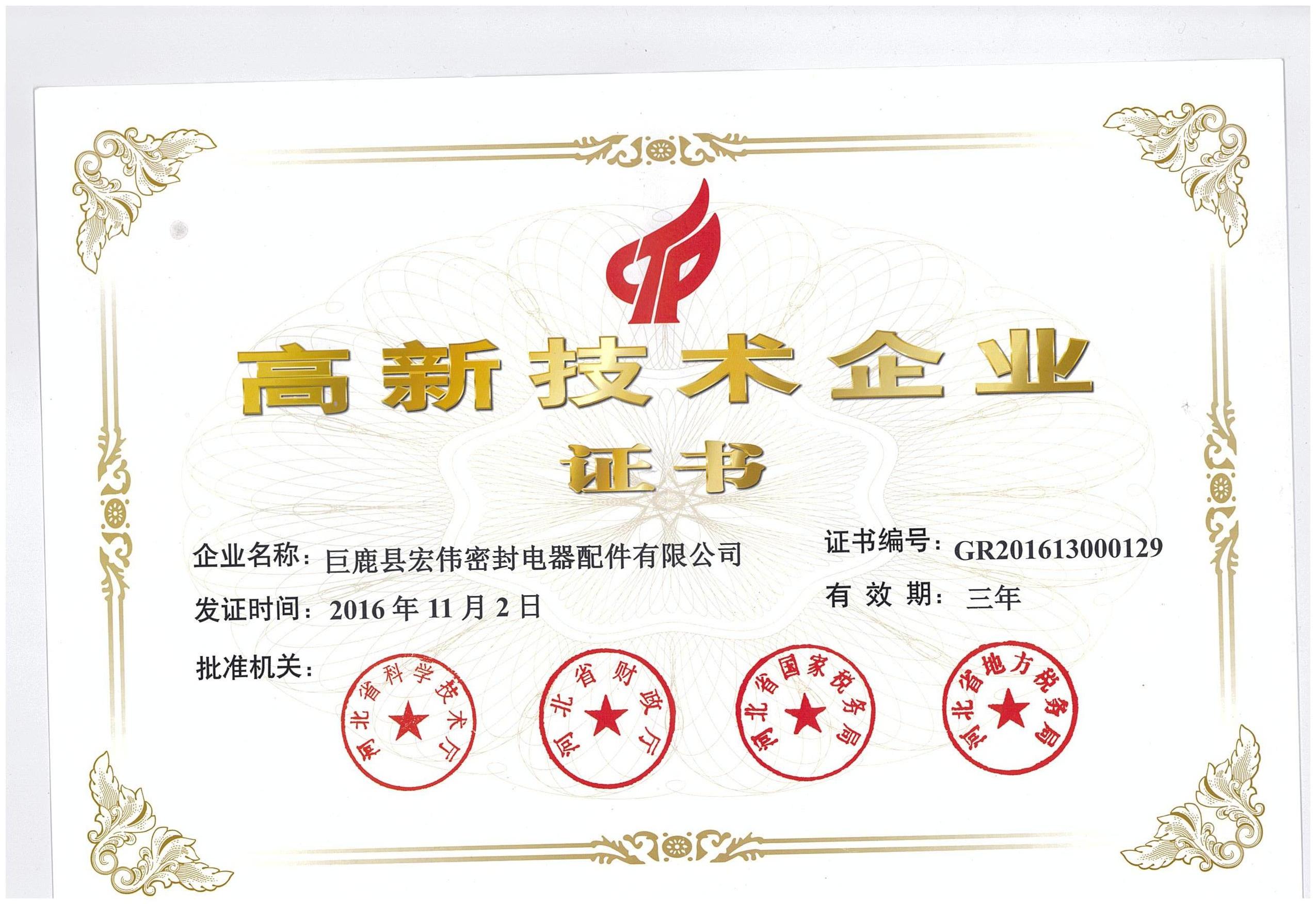 巨鹿縣宏偉密封電器配件有限公司---高新技術企業